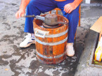 La garrafa o heladora es un sencillo dispositivo que básicamente consta de dos recipientes cilíndricos, uno dentro del otro. El cilindro interior suele ser metálico, buen conductor del calor/frío, permitiendo que los ingredientes que contiene se enfríen debido a la presencia de la mezcla de hielo y sal que se coloca en el recipiente externo, en este caso elaborado con algún tipo de material aislante como la madera, corcho… a fin de evitar que ceda frío o tome calor del entorno exterior.